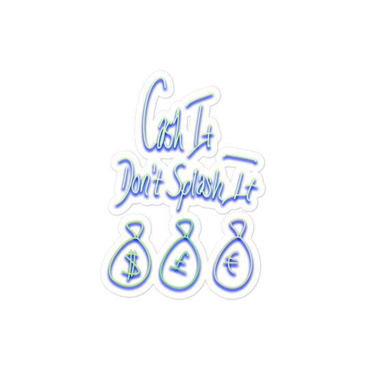 Cash It Don't Splash It Sticker, Bubble Free Motivational Decal, Vinyl Laptop & Stationary Sticker, Waterproof Car & Window Slogan Decal